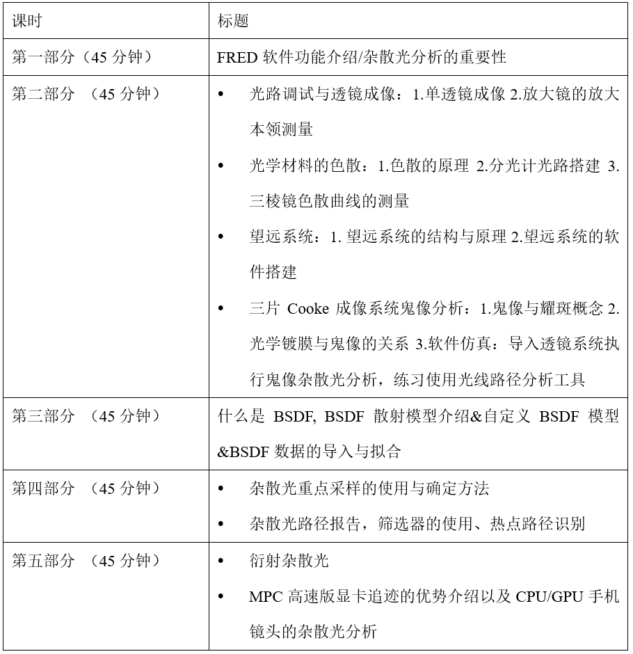 主題二:FRED光機系統(tǒng)&雜散光實驗仿真課程