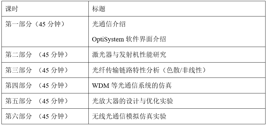 光纖通信課程是通信類專業(yè)的重要課程。但是光纖通信課程中概念原理抽象,實驗難度比較大,學生不利于理解。OptiSystem是光通信系統(tǒng)仿真軟件,利用OptiSystem軟件,可以將模擬仿真與課本案例相結合,增強學生對光通信器件以及系統(tǒng)的理解。
