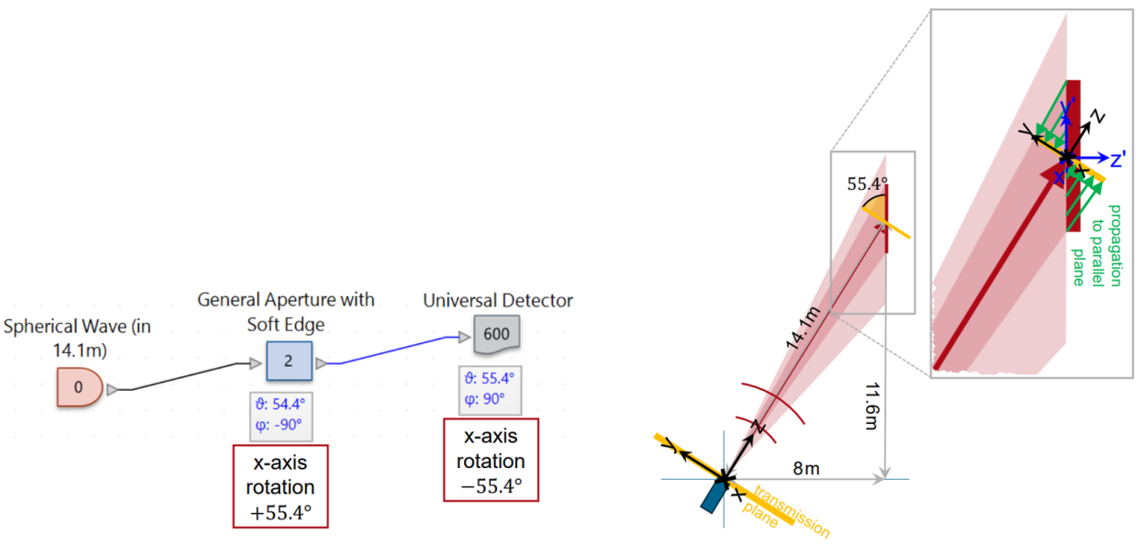 之后,我們將使用一個(gè)光闌(綠色矩形),它只傳輸由圖案產(chǎn)生的光,并阻止來(lái)自周?chē)h(huán)境的雜散光。