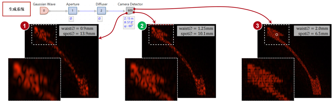 為了顯示不同類(lèi)型的散斑圖案,所考慮的束腰直徑將在[0.9;2.0]mm的范圍內(nèi)。
