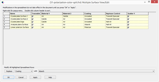 到這里設(shè)置已經(jīng)完畢,整個(gè)系統(tǒng)看起來(lái)像下圖的樣子,也可以到 Edit/Edit View Multiple Surfaces 下查看各個(gè)表面的材料,鍍膜,光線控制等性質(zhì)。
