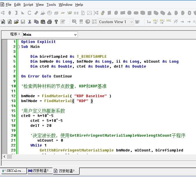 目前,F(xiàn)RED溫度敏感性的評價可使用腳本語言實現(xiàn)。本文演示了一個雙折射材料的折射率隨溫度變化而變化腳本。