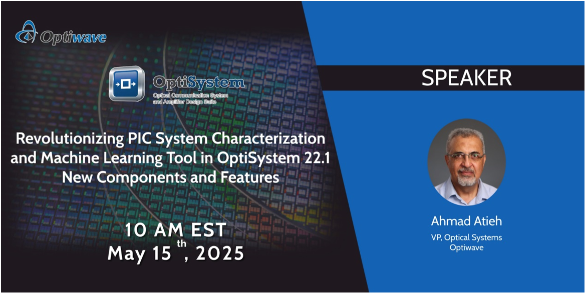 邀請(qǐng)您參加OptiSystem研討會(huì):革命性的PIC系統(tǒng)表征和機(jī)器學(xué)習(xí)工具
