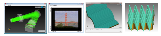 左數(shù)第一幅圖給出了一個(gè)光學(xué)系統(tǒng)-通過本課程中介紹的場追跡(Field Tracing)和光線追跡(Ray Tracing)來設(shè)計(jì)和仿真的。第二幅圖給出了一個(gè)偏離像平面的一個(gè)圖像-在VirtualLab中如何表示光線由本課程中第一個(gè)話題給出。第三幅圖給出了具有納米增透結(jié)構(gòu)的柱面透鏡陣列,第四幅圖給出了復(fù)眼結(jié)構(gòu)的表面。