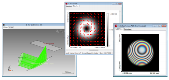 計算干涉圖并模擬干涉儀:計算兩個或兩個以上的光分布的干涉圖樣,模擬有相干光源的干涉儀。