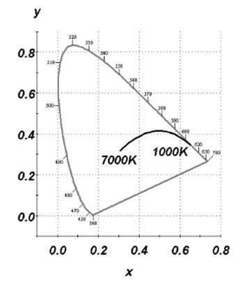 這種色度坐標(biāo)位于Planckian Locus上,如圖2