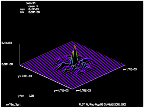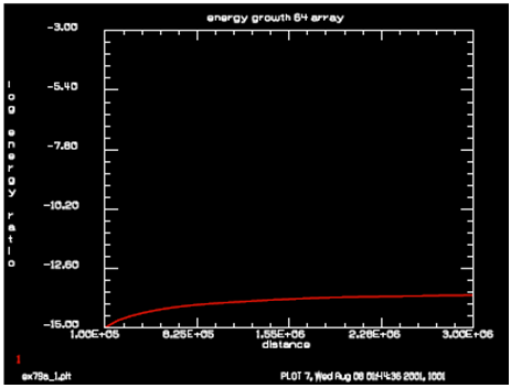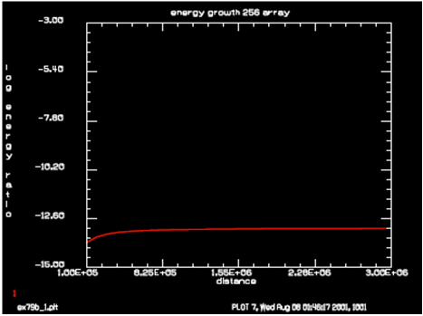 在瞬態(tài)拉曼效應的模擬過程中有一個關(guān)鍵問題需要解決,那就是如何處理自發(fā)輻射的角度。更精細的空間采樣就可以考慮更大的立體角。在本例中,我們只考慮初始10ps的作用過程,這樣瞬態(tài)增益將會比穩(wěn)態(tài)增益小很多。模擬過程中我們將傳播距離分30步完成,每一步1km,每一步綜合考慮自發(fā)拉曼效應、受激拉曼效應以及衍射效應。