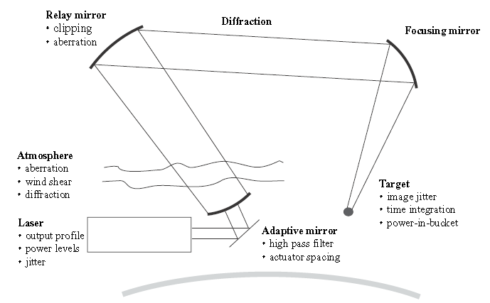引入自適應光學系統(tǒng)后,經(jīng)過大氣傳輸?shù)募す夤獍叩某跏糞trehl ratio從0.04被顯著提升到了0.87。