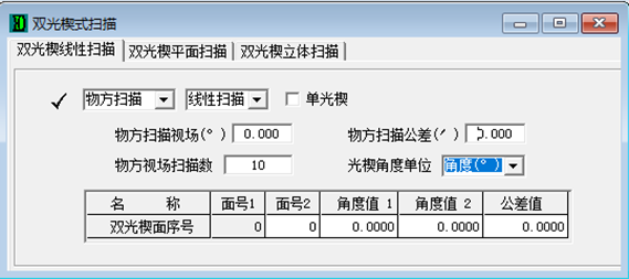 為實(shí)現(xiàn)雙光楔一維線性掃描系統(tǒng)自動(dòng)設(shè)計(jì),可以在主窗口界面環(huán)境下利用“編輯”中的“系統(tǒng)基本數(shù)據(jù)”菜單窗體內(nèi)選擇“掃描系統(tǒng)”的“雙光楔掃描方式”出現(xiàn)設(shè)計(jì)窗體如圖1。