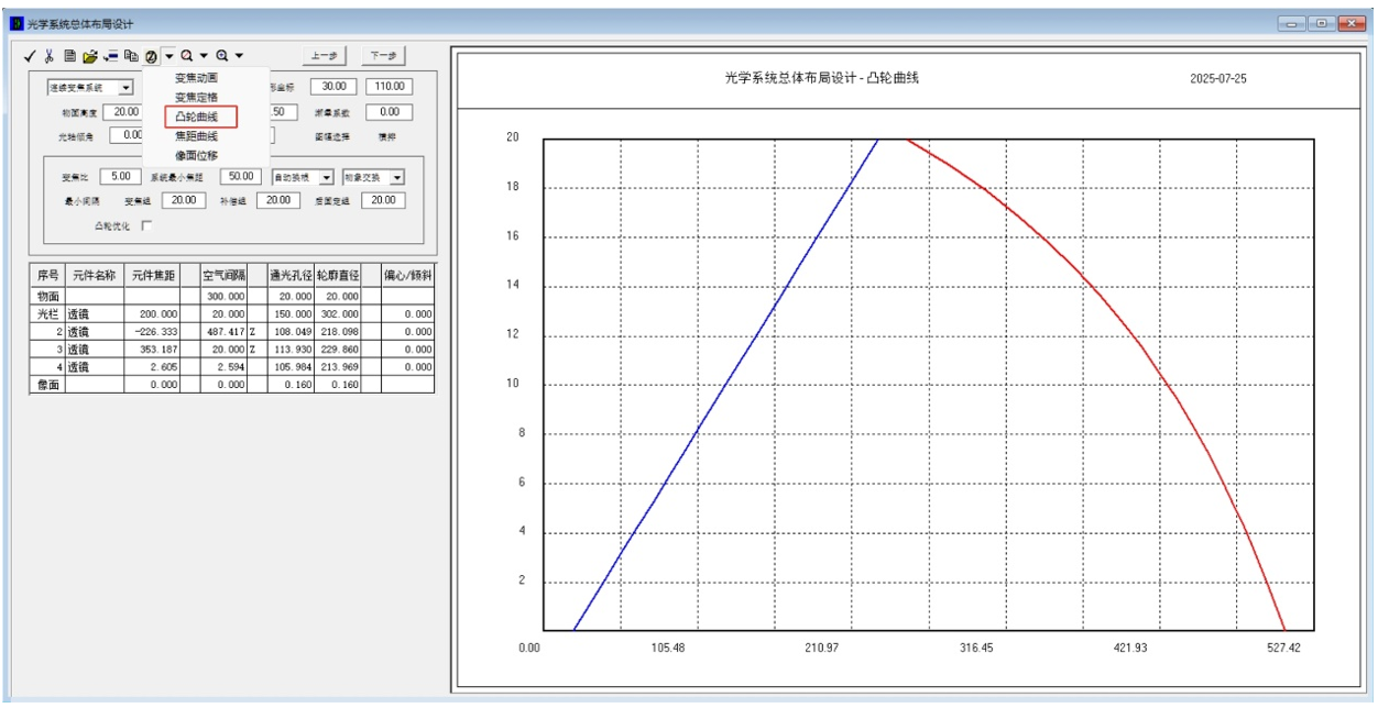 圖10.顯微系統(tǒng)連續(xù)變焦的凸輪曲線