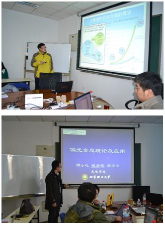 此后,譚小地教授的兩位博士生分別為大家做了一個簡短的報告,向大家介紹了各自的研究方向——全息存儲以及偏振全息以及目前的研究進(jìn)展和研究前景,引起了在場學(xué)員的濃厚興趣。