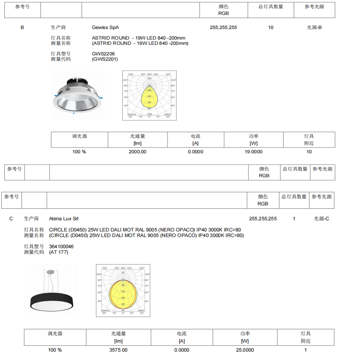 以上是本次案例所使用的燈具