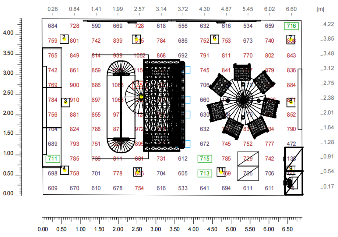 數(shù)值圖顯示區(qū)域照度為700lx-800lx