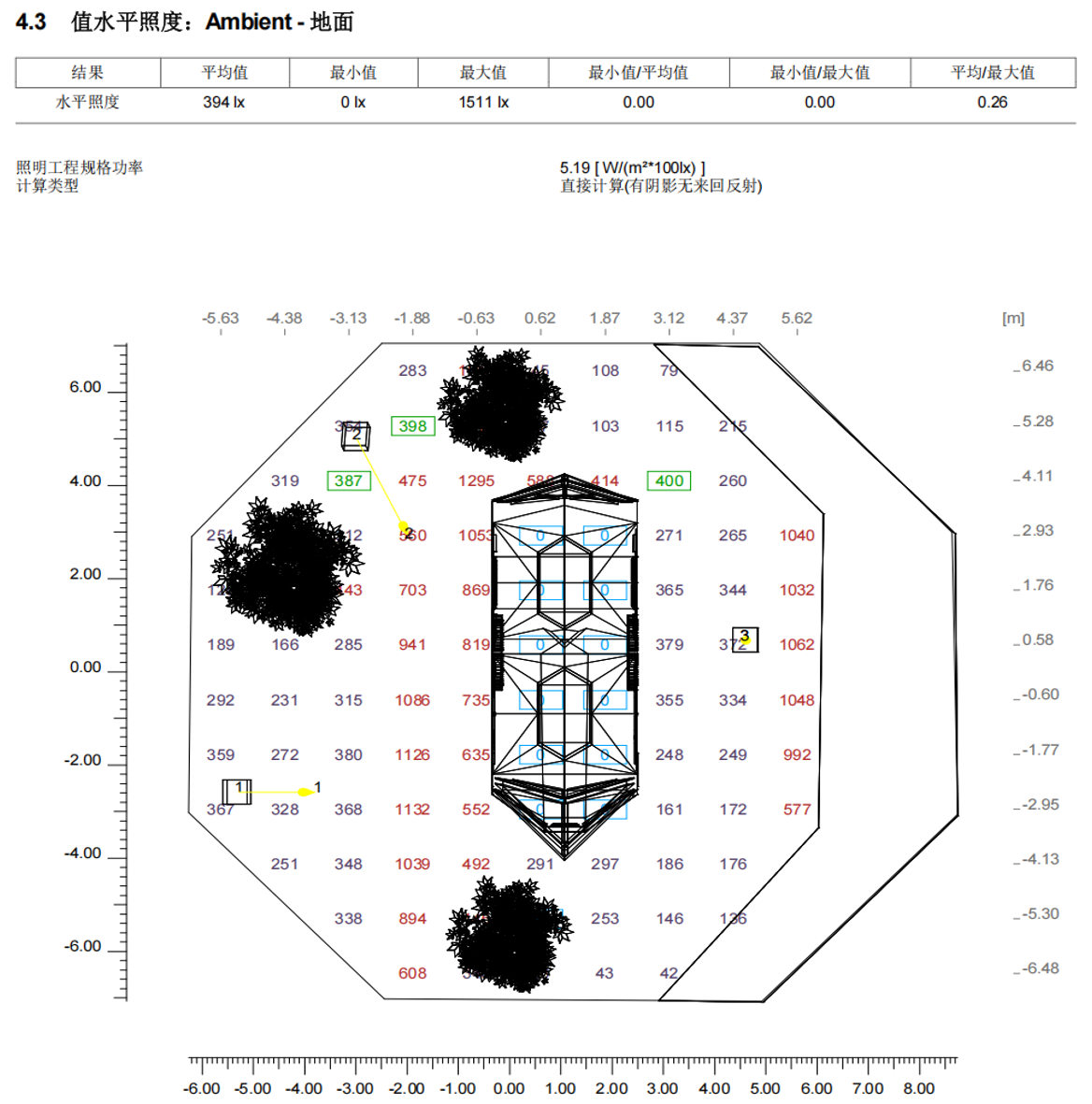 數(shù)值圖顯示區(qū)域照度為390--680lx。