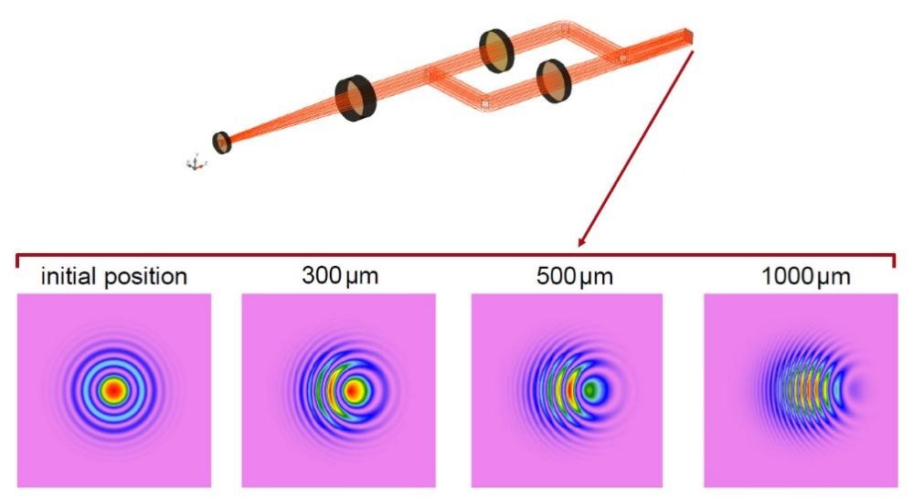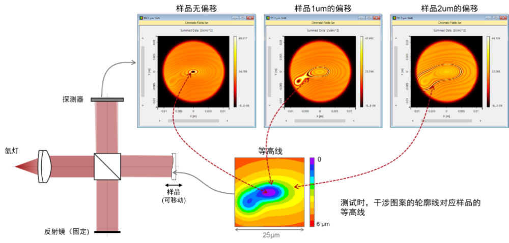 干涉系統(tǒng)光線追跡示意圖以及干涉圖樣展示