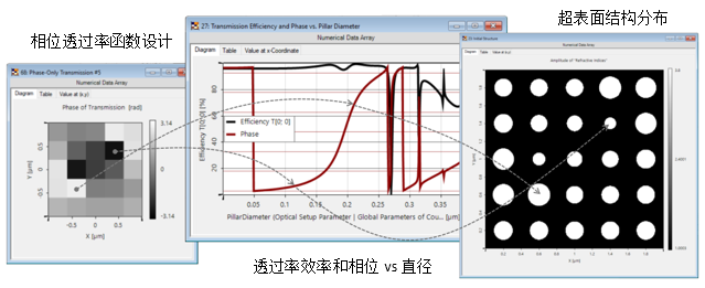 通過高速物理光學(xué),可以對(duì)1D和2D微納光柵進(jìn)行嚴(yán)格的電磁分析,獲得相應(yīng)的近場(chǎng)、衍射級(jí)次以及衍射效應(yīng),同時(shí)能夠?qū)鈻胚M(jìn)行優(yōu)化,以獲得所需要光柵結(jié)構(gòu)參數(shù)并集成到整個(gè)光學(xué)系統(tǒng)中進(jìn)行分析。