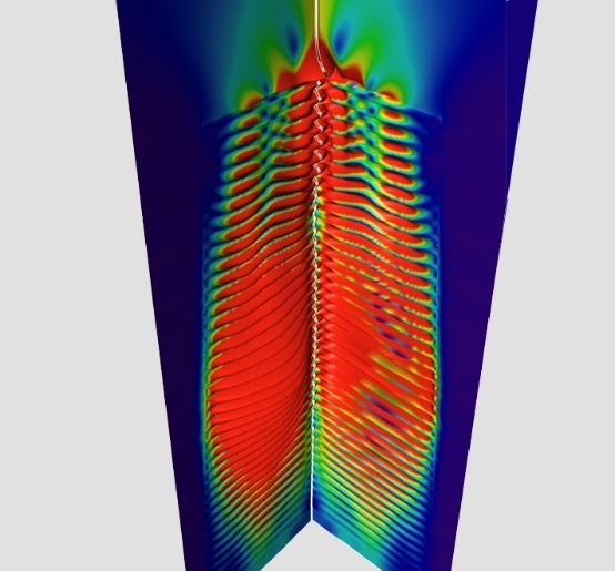 邊緣(水平發(fā)射器):在這種情況下,激光諧振腔由一個相對較長的波導(dǎo)組成。光束在波導(dǎo)的端面水平被激發(fā)。為了設(shè)計一個邊緣發(fā)射器,計算了激光諧振腔的波導(dǎo)模式,可詳見案例大功率二極管激光器