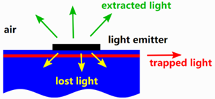 上圖所示垂直發(fā)射器(黑色盒子)安裝在基片上或基片內(nèi),通常情況下是多層堆棧。光線在活躍區(qū)域(黑色盒子)產(chǎn)生,并且被激發(fā)到上半部分空間。除了由阻尼材料引起的內(nèi)部損失,光能也由于輻射到基片或水平方向的光在基片層中被捕獲而損失。建立垂直光光源有以下兩種方法: