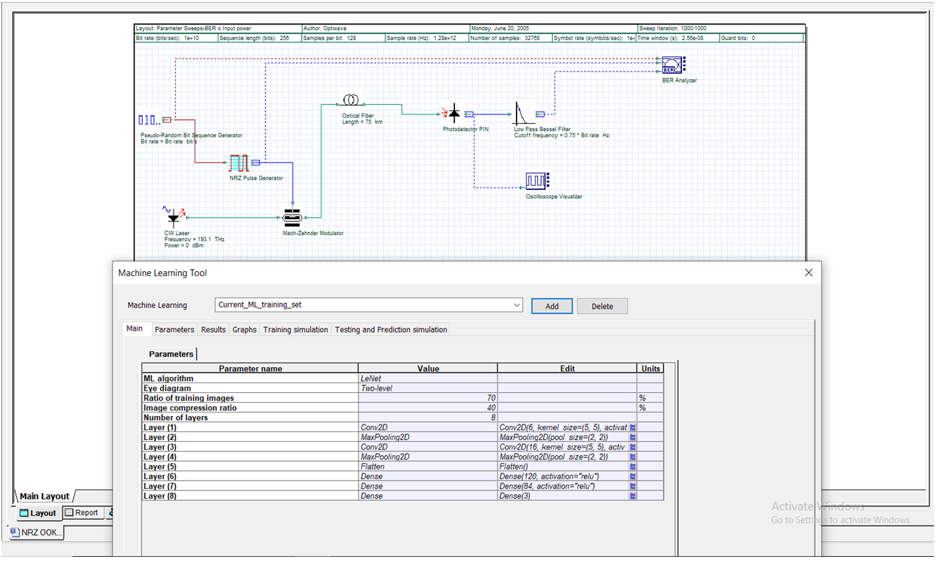 圖3.為10Gbps NRZ OOK-DD系統(tǒng)創(chuàng)建的機(jī)器學(xué)習(xí)工具界面