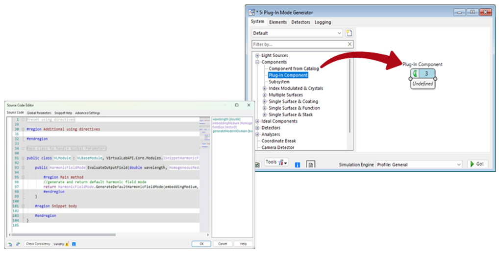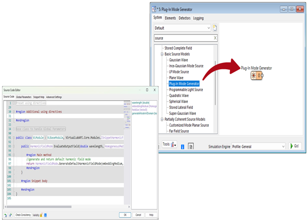插件模式生成器支持用戶通過直觀的C#腳本在x域或k域中自定義橫向場,將高級語言的靈活性與即用型物理計算結(jié)果完美結(jié)合。