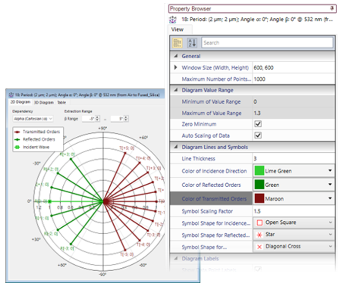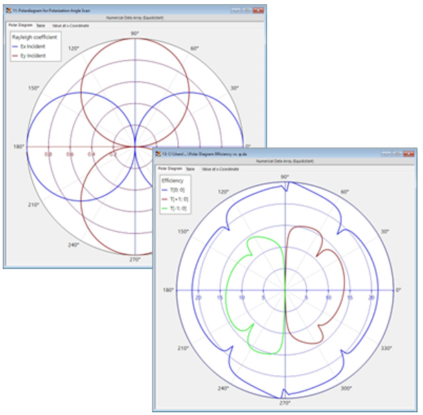 VirtualLab Fusion的極坐標圖視圖(polar diagram view)現(xiàn)在可以無縫處理 0°-360° 的數(shù)據(jù)范圍,在適當情況下會自動顯示完整的 2π 圓。