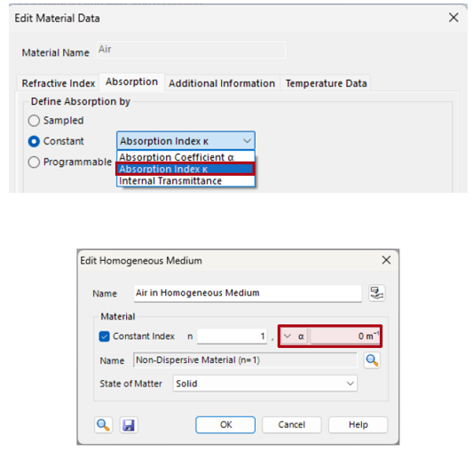 VirtualLab Fusion 現(xiàn)在支持定義材料和均勻介質(zhì)的吸收特性: