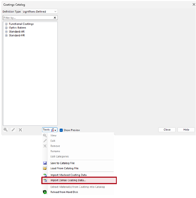 從 Zemax 文件手動將膜層添加到用戶目錄
