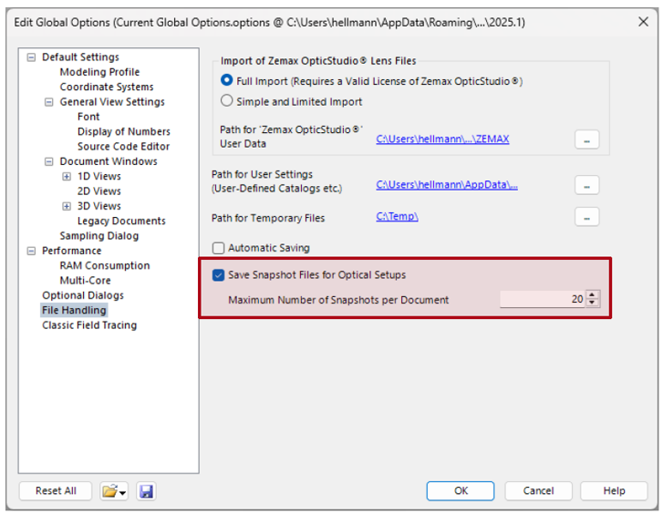 VirtualLab Fusion 2025.1增加了對光學設(shè)置快照的新控制