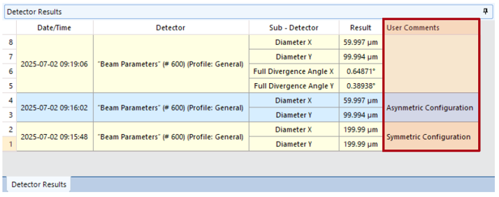 我們在 VirtualLab Fusion 中增強了處理探測器結(jié)果的方式。探測器結(jié)果表格現(xiàn)在支持用戶自定義評論,通過直接在結(jié)果中添加有意義的注釋,更容易跟蹤和比較模擬結(jié)果。
