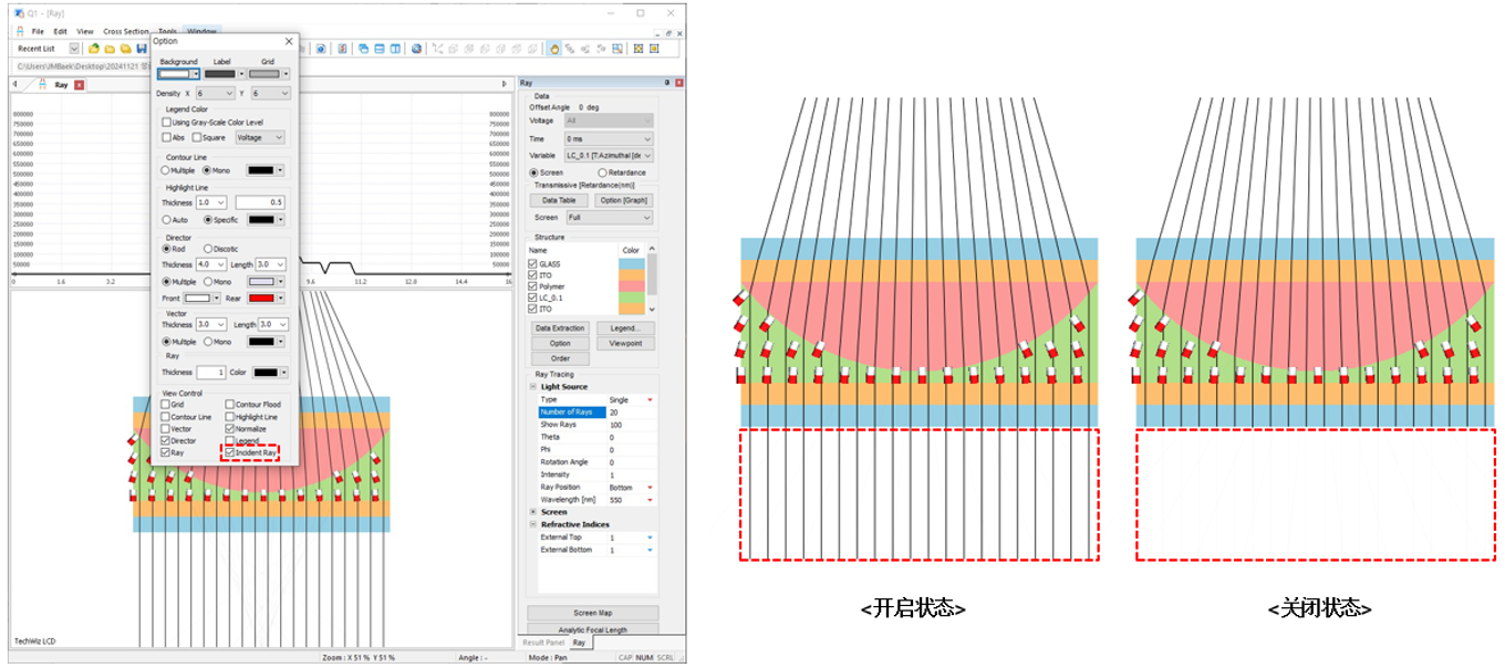 修正了當LC預(yù)傾斜角度為(θ, π) =(90˚,90˚)時無法進行射線分析的問題。