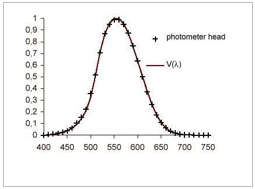 該光電元件由硅二極管組成,其響應度利用全濾波方法對應于相對可見光譜曲線CIE V(λ)。