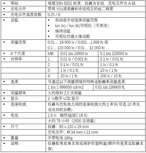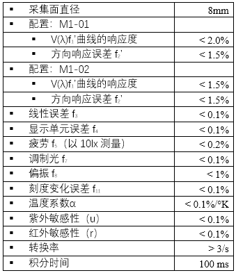 專業(yè)M1照度計-技術(shù)參數(shù)