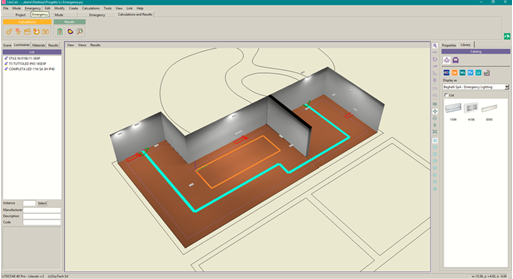 根據(jù)用戶通過(guò)相應(yīng)對(duì)話框定義的照明參數(shù)集(僅適用于Emergency Plus版本),自動(dòng)為不同區(qū)域選擇光源的位置。 該程序會(huì)自動(dòng)檢查所達(dá)到的照度水平,并在不一致的情況下建議自動(dòng)添加燈具,直到達(dá)到預(yù)期水平