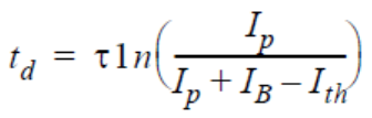 對于完全關(guān)閉的激光器,載流子壽命將限制調(diào)制速率。對于電流脈沖Ip,時(shí)間周期td由下式給出:
