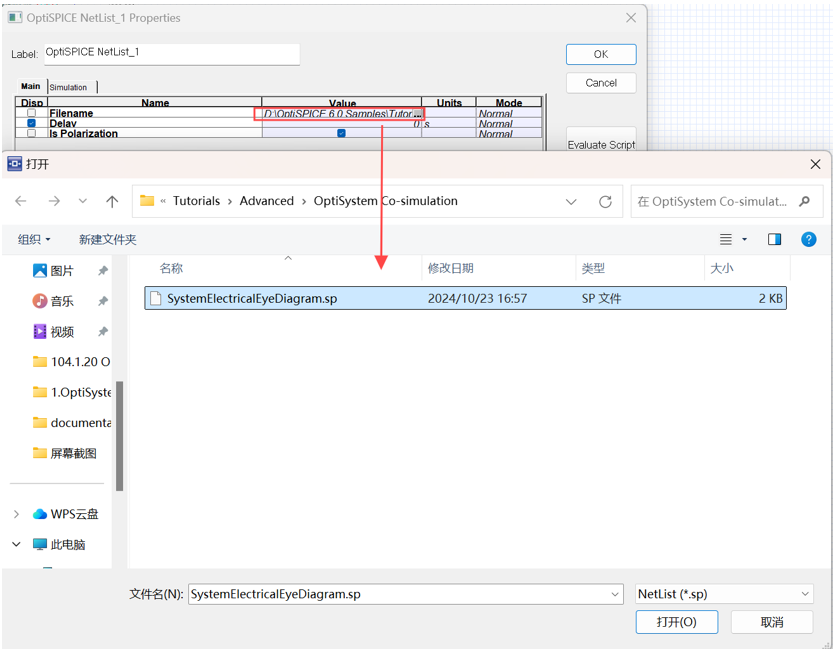 圖4.選擇用于聯(lián)合仿真的Netlist文件