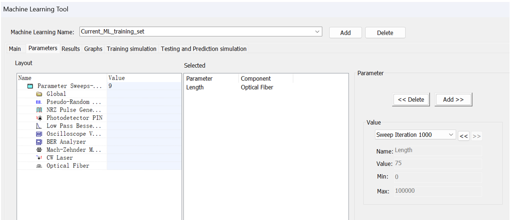 OptiSystem軟件已集成機器學習(ML)工具,用戶可通過分析雙電平系統(tǒng)的眼圖來訓練光通信系統(tǒng)。該工具提供多個功能選項卡,支持用戶對OptiSystem項目生成的眼圖模型進行訓練與測試。此外,工具還可導入外部眼圖圖像,并基于該圖像預測系統(tǒng)在生成眼圖時的運行狀態(tài)。工具將根據(jù)訓練條件提供系統(tǒng)參數(shù)及眼圖分析結果,以便用戶采取相應的系統(tǒng)管理措施。本案例將展示如何在10Gbps NRZ OOK-DD系統(tǒng)中使用機器學習工具。
