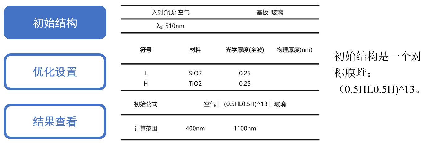 通過優(yōu)化,最終獲得了滿足設(shè)計(jì)要求的膜層結(jié)構(gòu)。