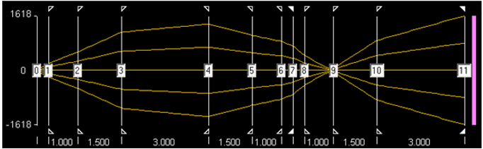 圖5顯示的是泵浦光從二極管晶片表面(元件0)開始傳播,經過液流管道(元件1到2),液體(元件2到3),棒(元件3到4),又一次經過液體和液流管道(元件4到6);然后被元件7反射,反射回來之后泵浦光又一次在液流管道和液體以及棒中傳播(元件10到11)。