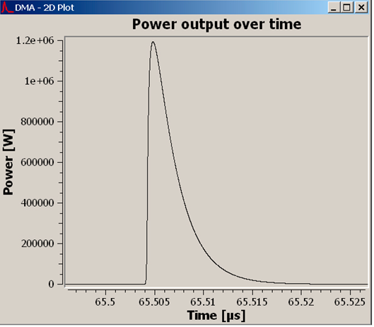 點(diǎn)擊“2D - Power output over time”,脈沖顯示為垂直線。