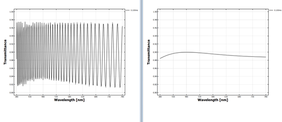 如果在在多重反射分析中存在一個厚層,則根據(jù)波長的不同,透射/反射圖會出現(xiàn)振蕩的形式。