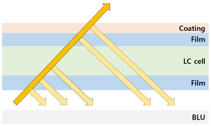 TechWiz軟件可以考慮顯示面板每層的多次反射來計算表面反射,之前我們曾介紹過關(guān)于外部光源的反射,本例將介紹關(guān)于底部(即從背光源一側(cè)發(fā)出)的光源的反射的計算