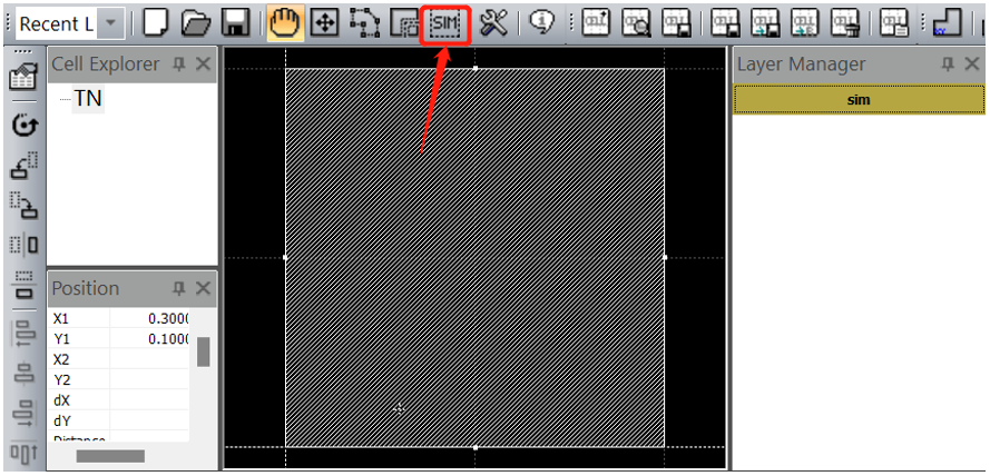2.1由于此案例結(jié)構(gòu)是上下電極的簡單結(jié)構(gòu),在TechWiz Layout中僅設(shè)置模擬區(qū)域即可,在SIM中搭建堆棧結(jié)構(gòu)