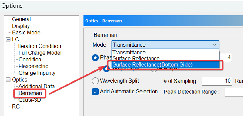 使用Surface Reflectance(Bottom Side)功能,同樣考慮了面板各層的多次反射,用戶可以計算BLU方向的反射。(用戶無需反向結(jié)構(gòu)的情況下計算底部反射)