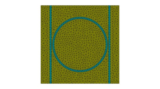 在本案例中,所有進(jìn)入器件的波導(dǎo)具有相同的幾何形狀。通過(guò)環(huán)形諧振腔和兩個(gè)平行波導(dǎo)的組裝,建立二維幾何結(jié)構(gòu):