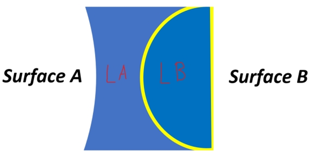 PanDao的膠合工藝涵蓋兩個(gè)光學(xué)表面的膠合,例如將透鏡B(LB)精密膠合至透鏡A(LA)表面: