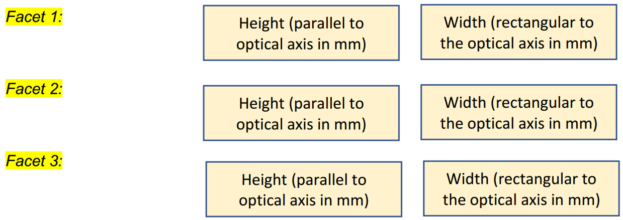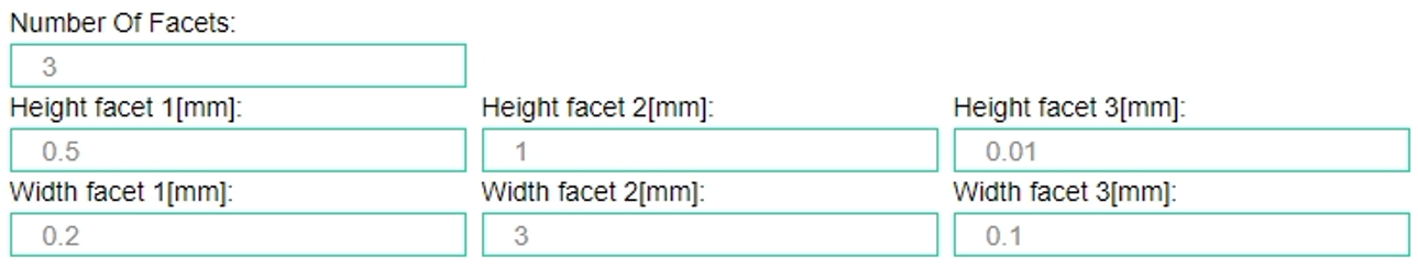 • 矩形面形臺階(對應(yīng)面形章節(jié)示意圖中的編號2和3):需輸入高度與寬度,例如“面形1:0.5 mm(高) / 0.1 mm(寬)”;