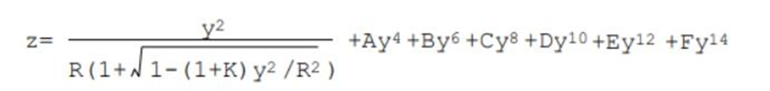 非球面是一種旋轉(zhuǎn)對(duì)稱(chēng)但橫截面為非圓形的曲面,通?梢酝ㄟ^(guò)以下形式的冪級(jí)數(shù)展開(kāi)式進(jìn)行描述: