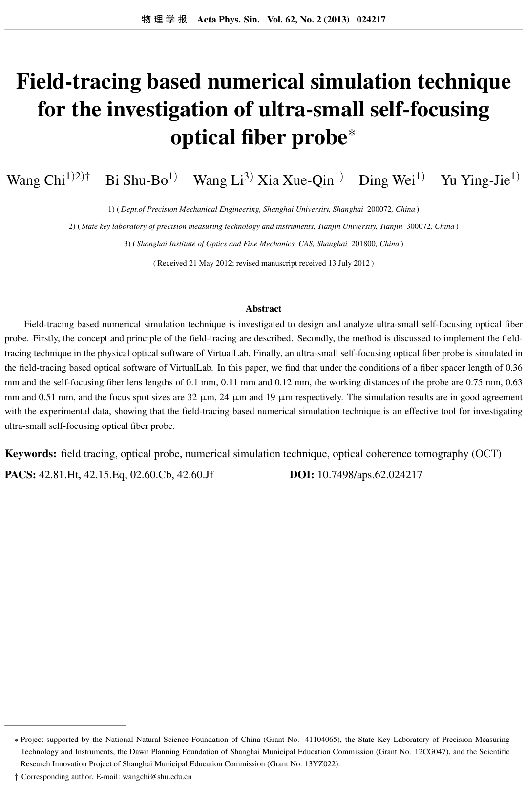 超小自聚焦光纖探頭研究用場(chǎng)追跡數(shù)值模擬技術(shù)