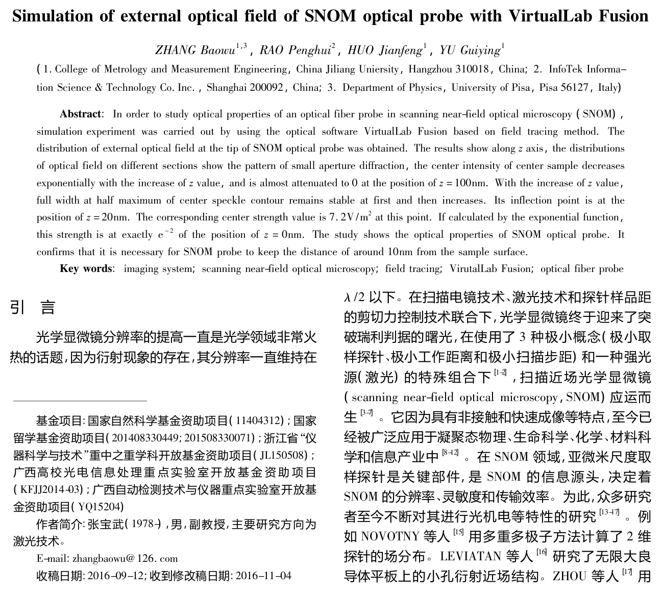 關(guān)鍵詞: 成像系統(tǒng); 掃描近場光學顯微鏡; 場追跡; VirutalLab Fusion; 光纖探針