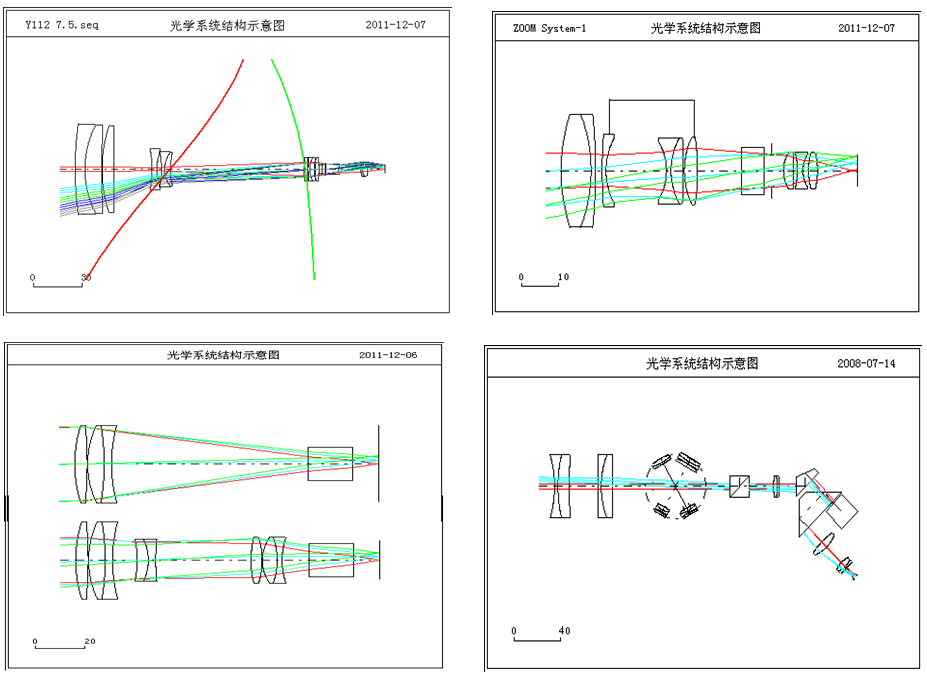 本程序可以自動(dòng)設(shè)計(jì)作為光學(xué)系統(tǒng)基礎(chǔ)的各種組合膠合薄透鏡光學(xué)元件、各類典型光學(xué)系統(tǒng)。其中各類連續(xù)變焦系統(tǒng)﹑斷續(xù)變焦系統(tǒng)、光學(xué)掃瞄光學(xué)系統(tǒng)以及雙高斯照相物鏡系統(tǒng)等。只要根據(jù)設(shè)計(jì)要求就能自動(dòng)設(shè)計(jì)出基礎(chǔ)結(jié)構(gòu)參數(shù)供自動(dòng)優(yōu)化以至最終完成滿足設(shè)計(jì)要求的合格光學(xué)系統(tǒng)。